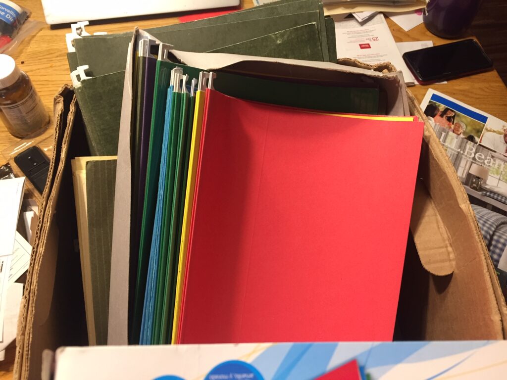 DISPOSITION: It turns out that Corvallis has a number of locations that (sometimes) accept office supplies such as these. These are headed to one of those locations. This is a good time for me to call your attention to the online guide to reuse in Corvallis, a project of the Corvallis Sustainability Coalition’s Waste Prevention Action Team. (Full disclosure: The household’s Master Recycler has had a role in this project for years.) In this case, it’s probably a good idea to phone ahead to make sure a location listed on the site still is taking items such as office supplies. But all of these folders will be donated — well, I might grab a handful of them, just in case I experience a sudden upsurge in material that I need to, you know, file. (Insert your own joke here about Joe Biden and classified material.)